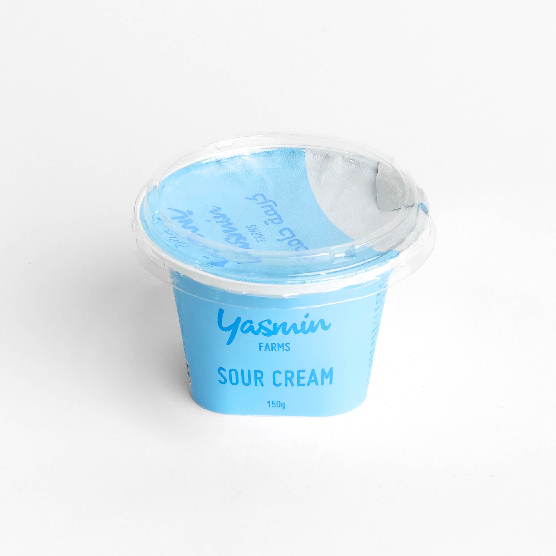 Yasmin Farms Sour Cream is made from fresh cow's milk, offering a rich, creamy texture with a hint of tanginess. Ideal for dips, baked potatoes, and enhancing the flavor of sauces and soups. This preservative-free dairy essential is smooth, versatile, and packed with nutrients.